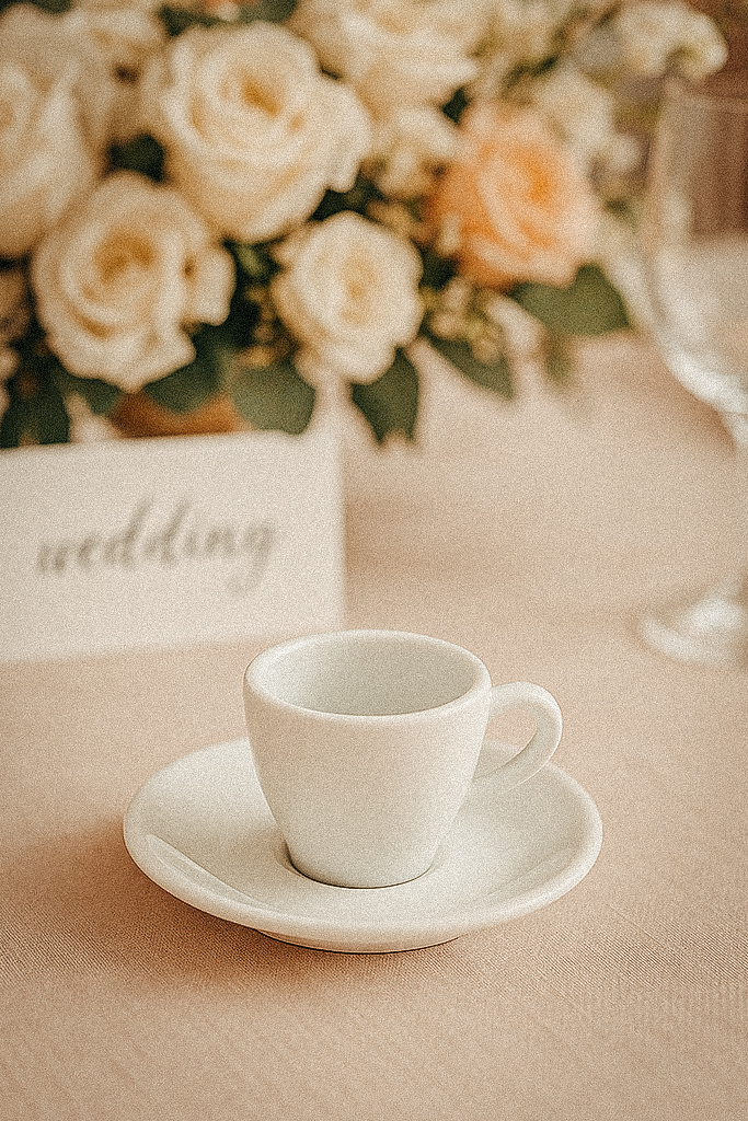 Unsere Espressotasse aus weißem Porzellan ist die stilvolle Wahl für Hochzeiten, Empfänge und andere Events, bei denen Genuss und Eleganz im Vordergrund stehen. Mit ihrem zeitlosen Design fügt sie sich harmonisch in jedes Ambiente ein – ob klassisch-romantisch oder modern-minimalistisch – und sorgt für ein einheitliches, gepflegtes Gesamtbild.